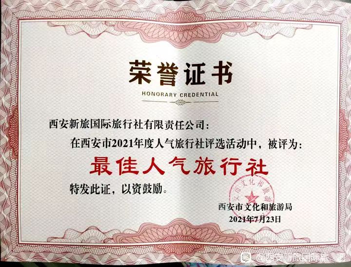 西安新旅國際旅行社地處西安市中心鐘樓商圈;是經(jīng)工商局和文旅局雙重審批的一家綜合性旅游企業(yè)!