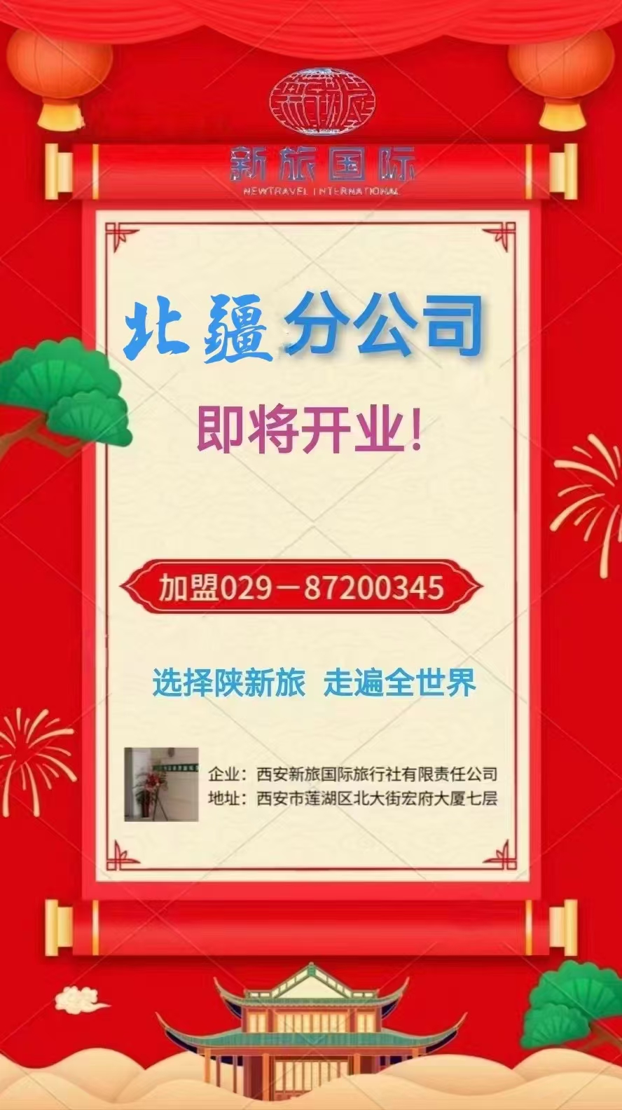 西安新旅國際旅行社有限責(zé)任公司北疆分公司 即將開業(yè)