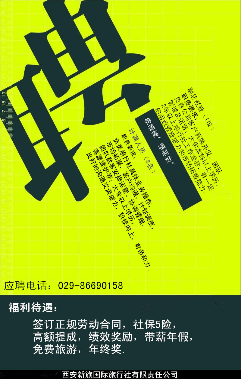 崗位要求:旅游相關(guān)專業(yè)大專以上學(xué)歷,良好的溝通交流能力,善于學(xué)習(xí),積極上進(jìn),有親和力;性別不限,年齡20-30周歲。