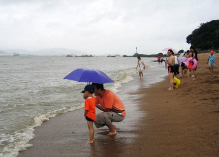 5、吃海鮮。作為北方內(nèi)陸的孩子,看著每個路邊攤門口塑料盆里的各種魚蝦蟹鱟,就夠刺激的了。點個花蛤湯,就能讓孩子一邊撿貝殼一邊吃晚飯了。