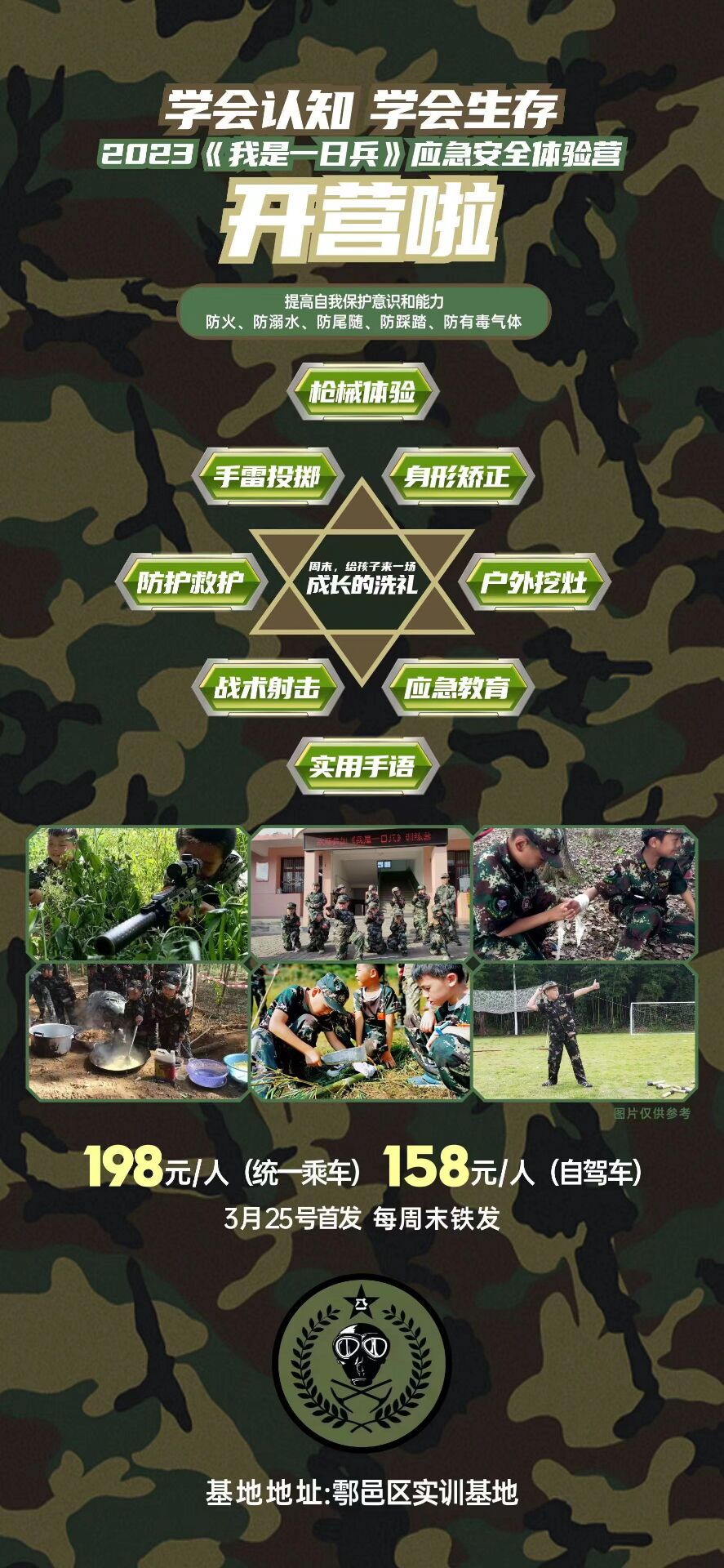 讓孩子當(dāng)一天好兵,重新認(rèn)識世界,發(fā)現(xiàn)不一樣的自己。培養(yǎng)雷厲風(fēng)行的作風(fēng),增強(qiáng)自身能力,學(xué)會保護(hù)自己,樹立強(qiáng)大信念,做一個智勇雙全的中華少年郎。
